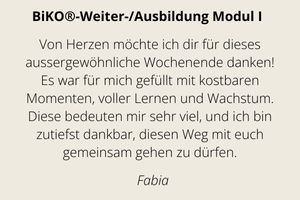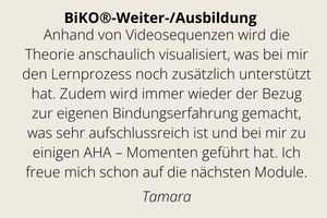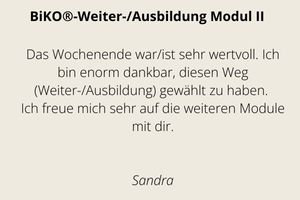 Nebst den umfangreichen und fundierten theoretischen Inhalten ist der Transfer in die Alltagspraxis mit Übungen und konkreten Beispielen ein wichtiger Bestandteil der BiKO®-Ausbildung. Auch der Austausch unter den Teilnehmer:innen aus verschiedenen Berufen (z.B. Lehrpersonen, Eltern, Therapeut:innen, Hebammen usw.) ist ein wertvoller und einzigartiger Teil der BiKO®-Ausbildung und bereichert die Ausbildung mit einem Erfahrungsschatz aus den verschiedenen Fachrichtungen.